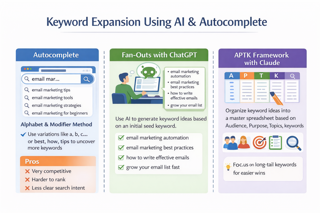 By now, you’ve collected keywords from autocomplete, structured them using the APTK framework, and expanded them with ChatGPT fan-outs. For many beginners, that’s enough to start creating strong SEO and AEO content.